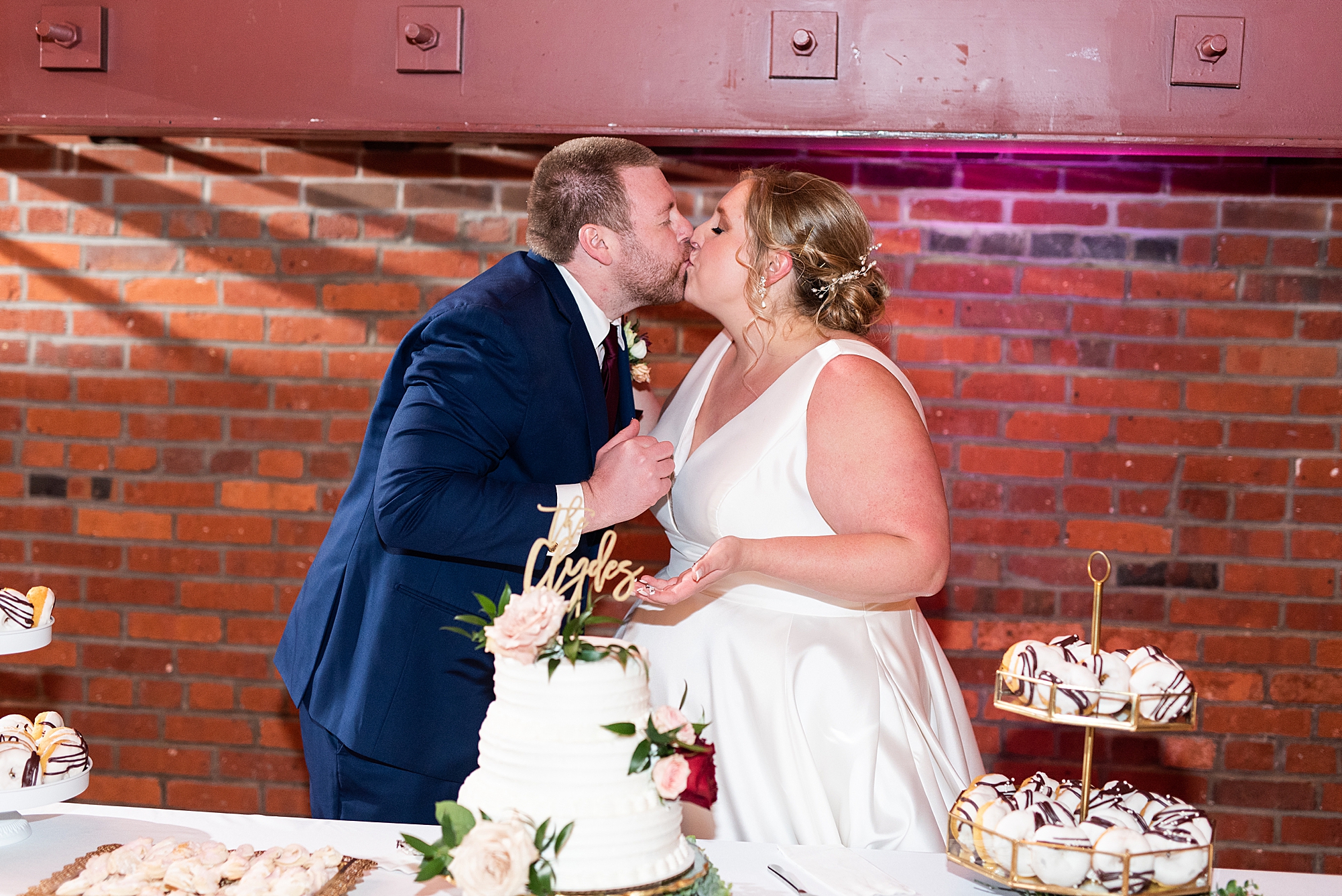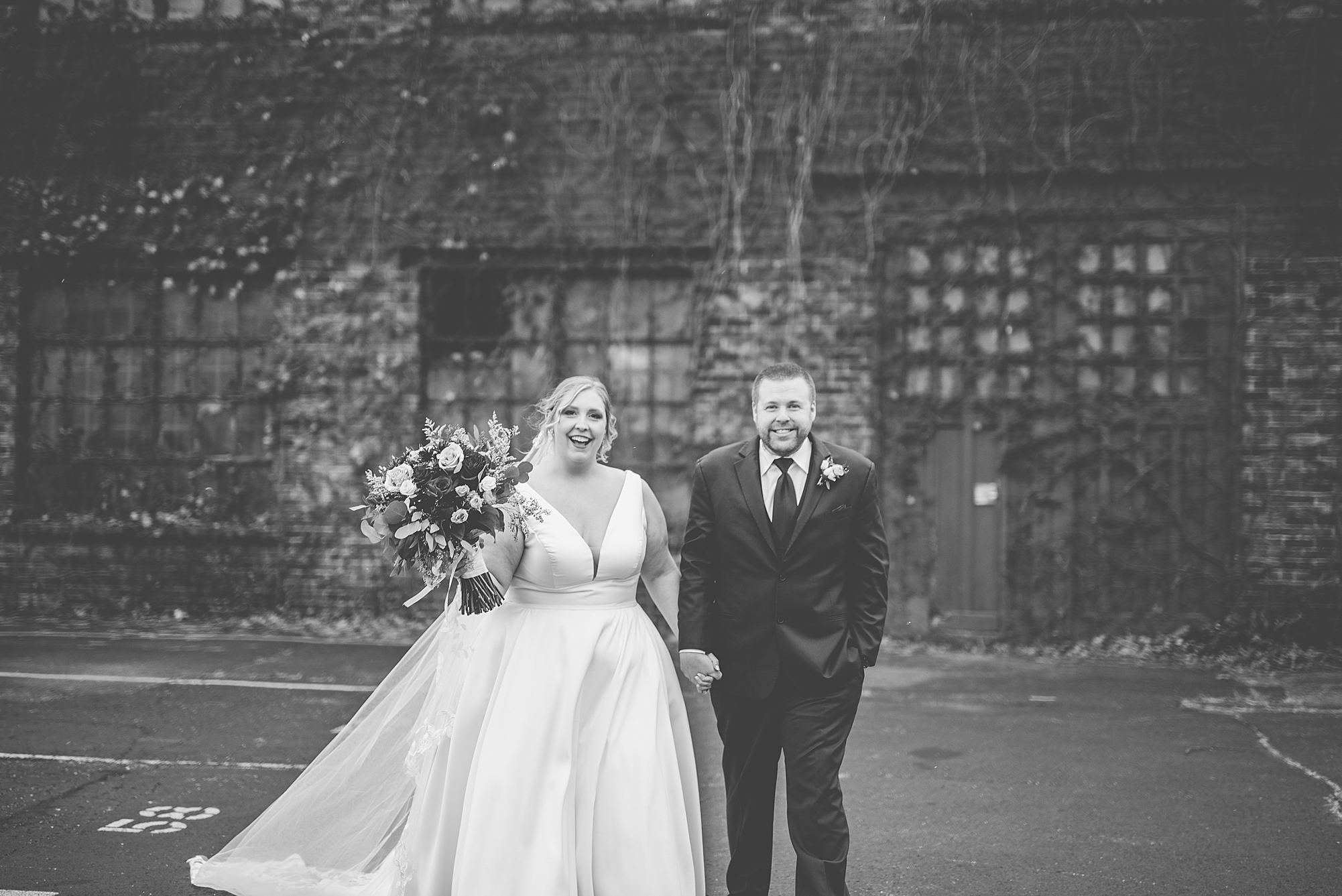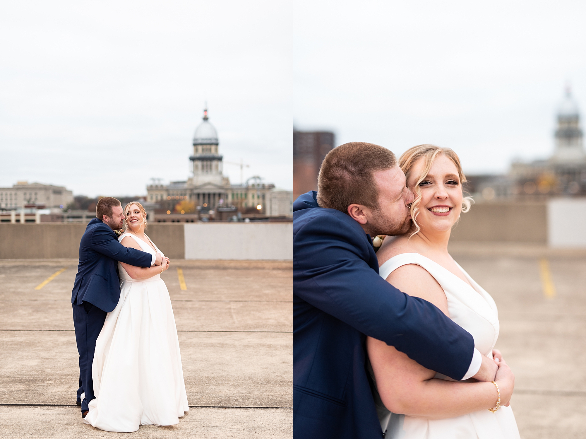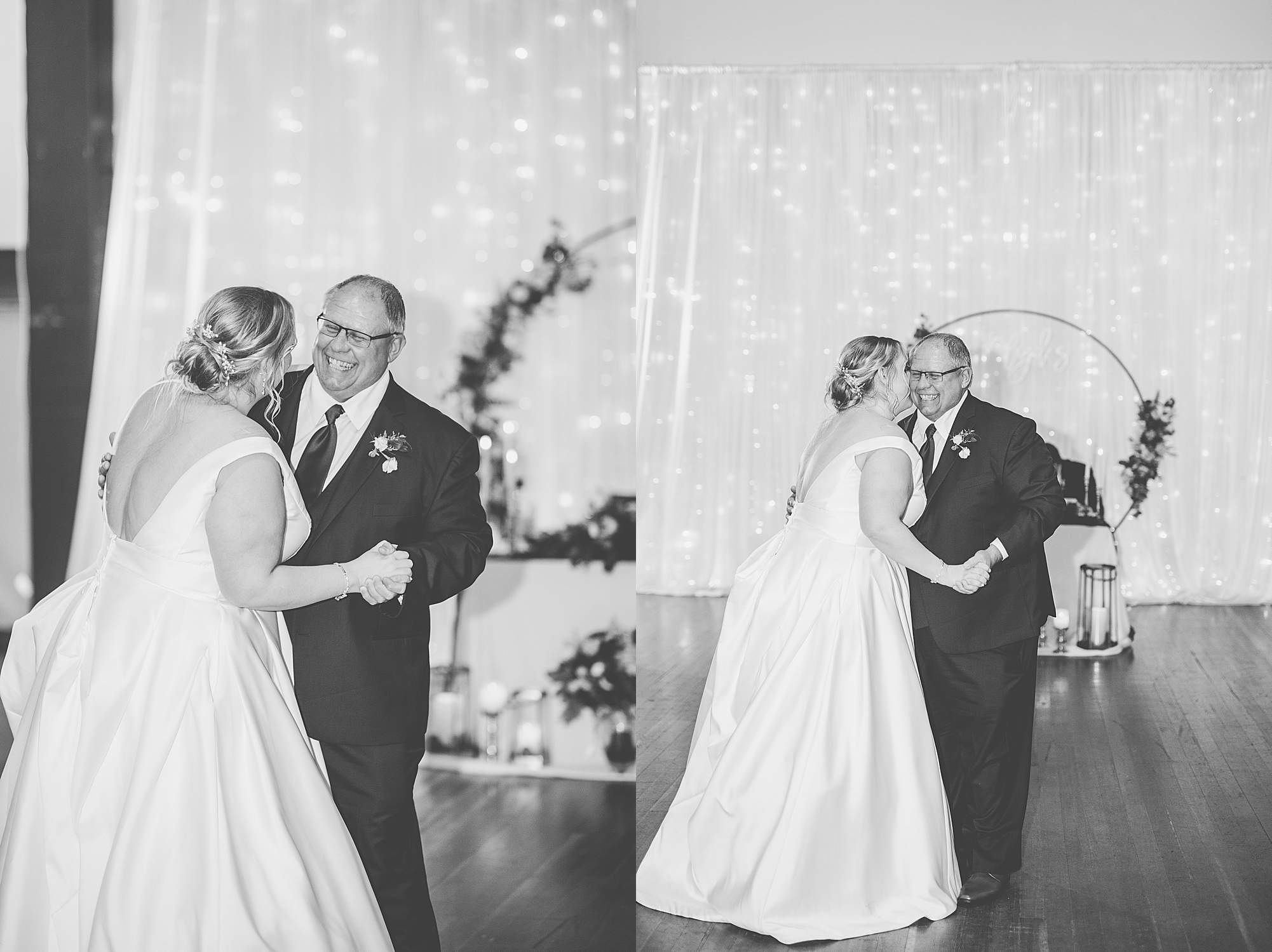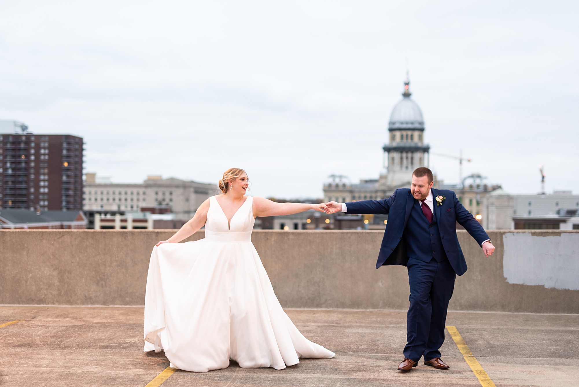 After the ceremony, Sarah and Chris loaded up their bridal party and we headed downtown Springfield for a couple more portraits of them as newlyweds. We stopped at their favorite downtown bar and even climbed a rooftop for a gorgeous cityscape! Chris did such a great job making Sarah laugh and they truly enjoyed spending every moment of their day together! Then, it was finally time to head to their reception to continue their celebration! The Artisans building was packed with all of their guests eager to welcome the newlyweds. Sarah and Chris decorated the venue so perfectly with candle light and so many gorgeous floral details. Everyone truly had such a great night dancing and celebrating Mr. and Mrs. Clyde! I could not be more honored to have been a part of such a special day for Sarah and Chris and I am so excited to share more from their big day!