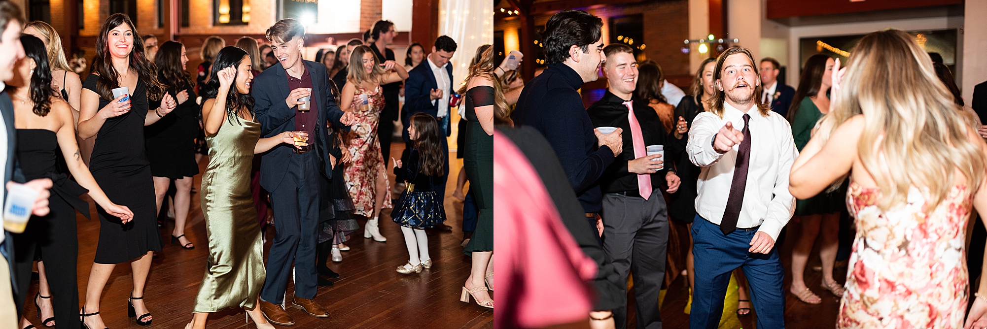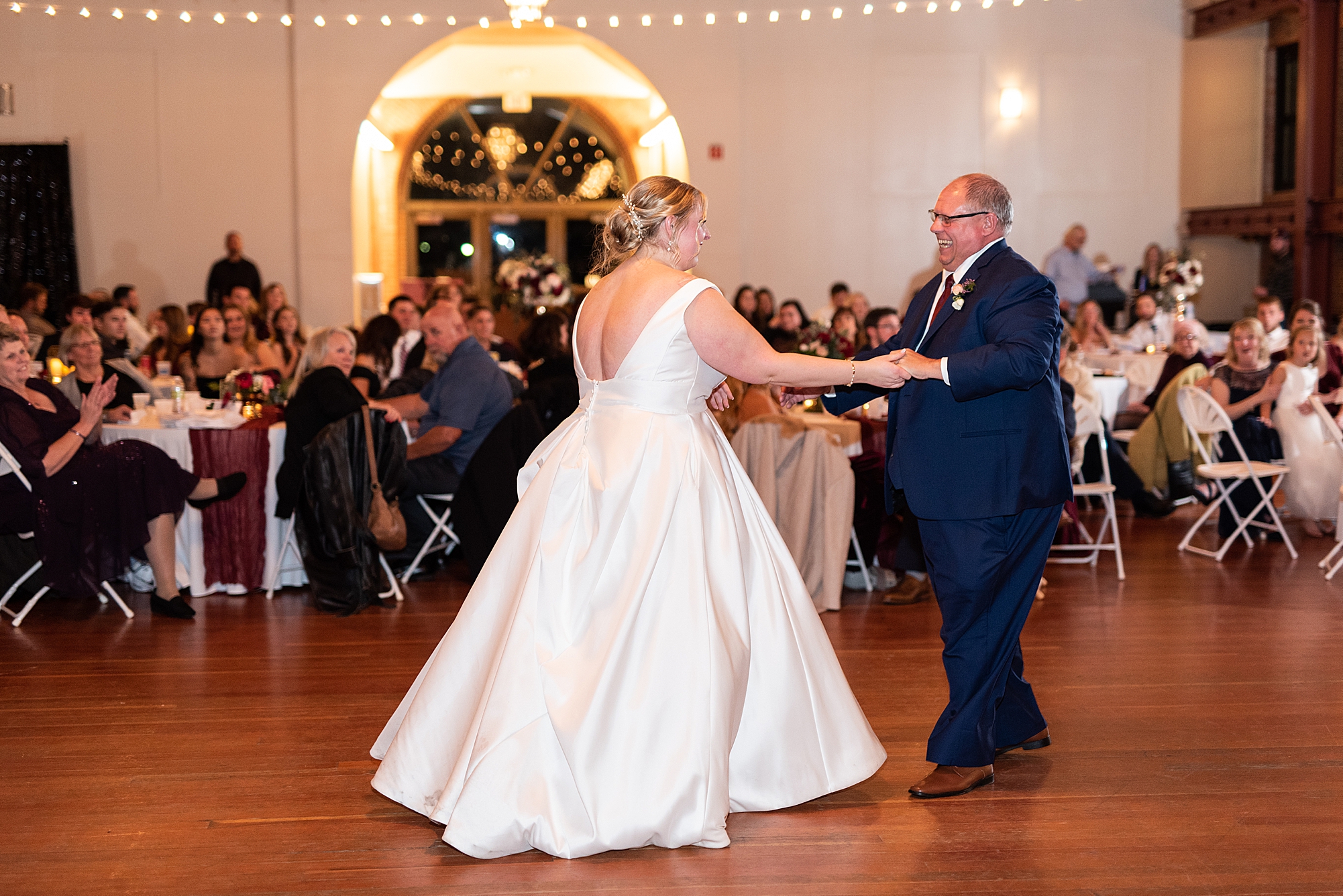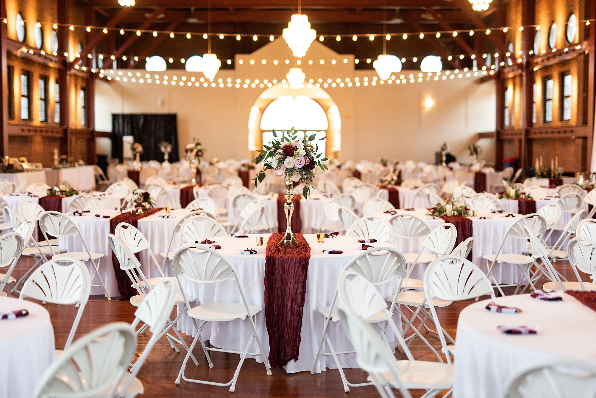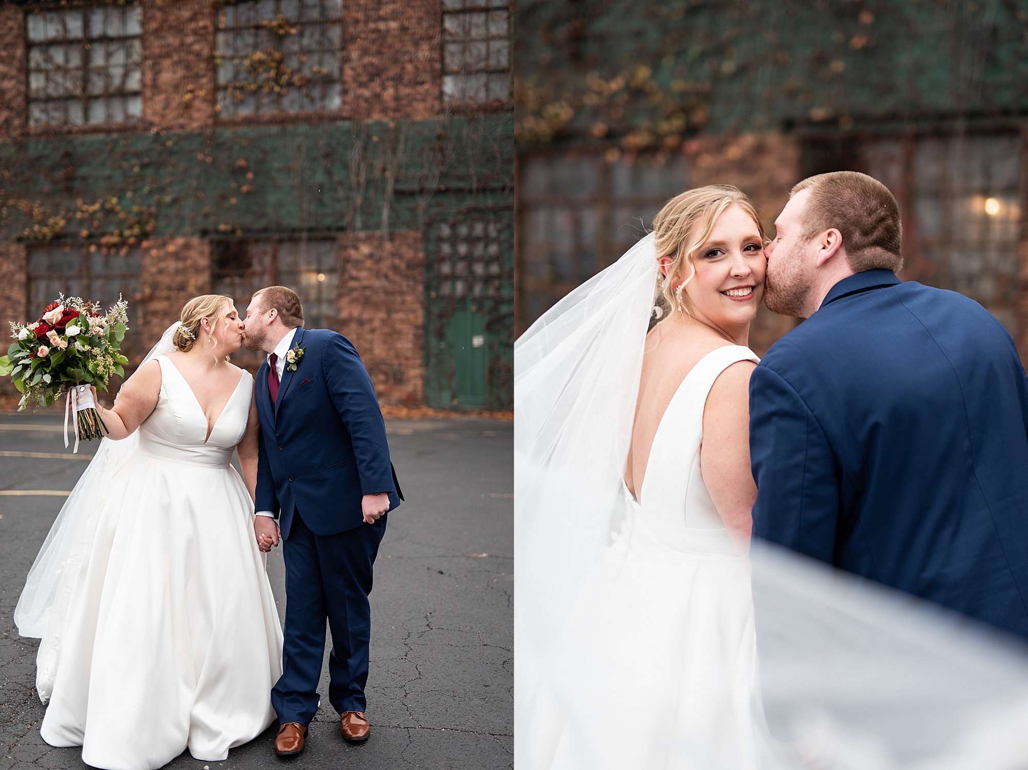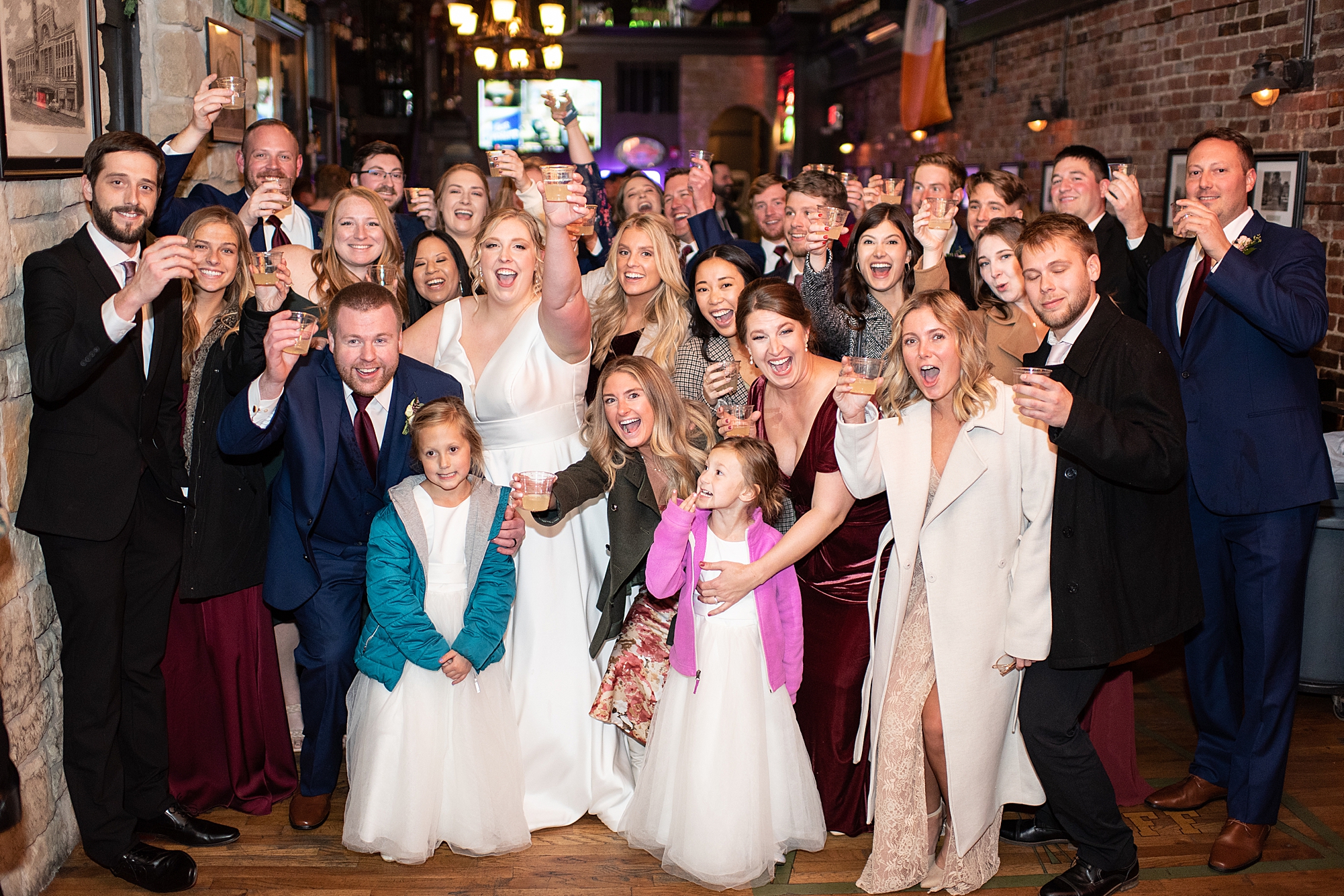 After the ceremony, Sarah and Chris loaded up their bridal party and we headed downtown Springfield for a couple more portraits of them as newlyweds. We stopped at their favorite downtown bar and even climbed a rooftop for a gorgeous cityscape! Chris did such a great job making Sarah laugh and they truly enjoyed spending every moment of their day together! Then, it was finally time to head to their reception to continue their celebration! The Artisans building was packed with all of their guests eager to welcome the newlyweds. Sarah and Chris decorated the venue so perfectly with candle light and so many gorgeous floral details. Everyone truly had such a great night dancing and celebrating Mr. and Mrs. Clyde! I could not be more honored to have been a part of such a special day for Sarah and Chris and I am so excited to share more from their big day!