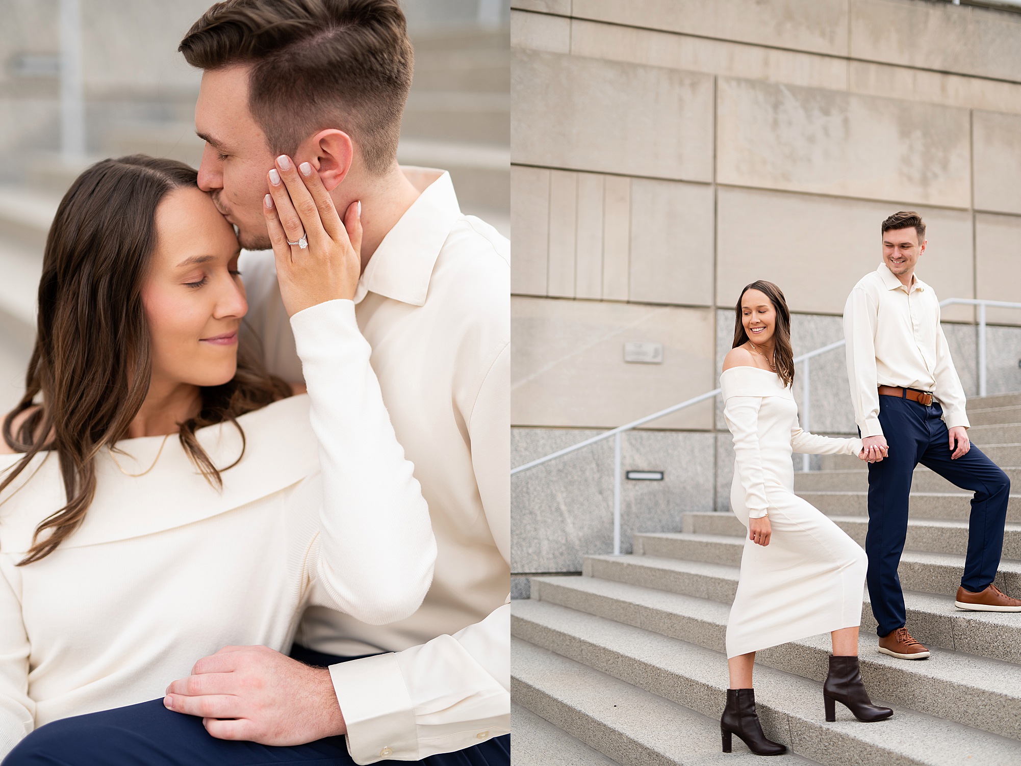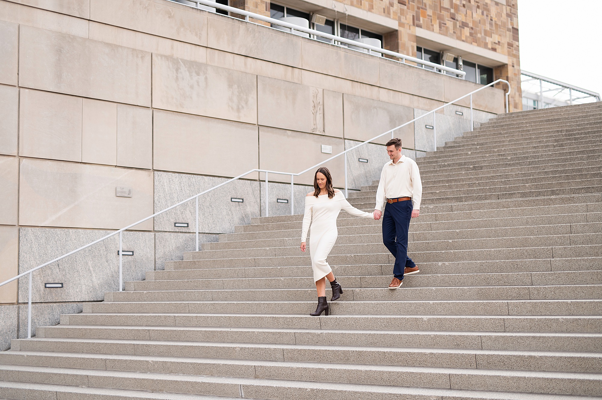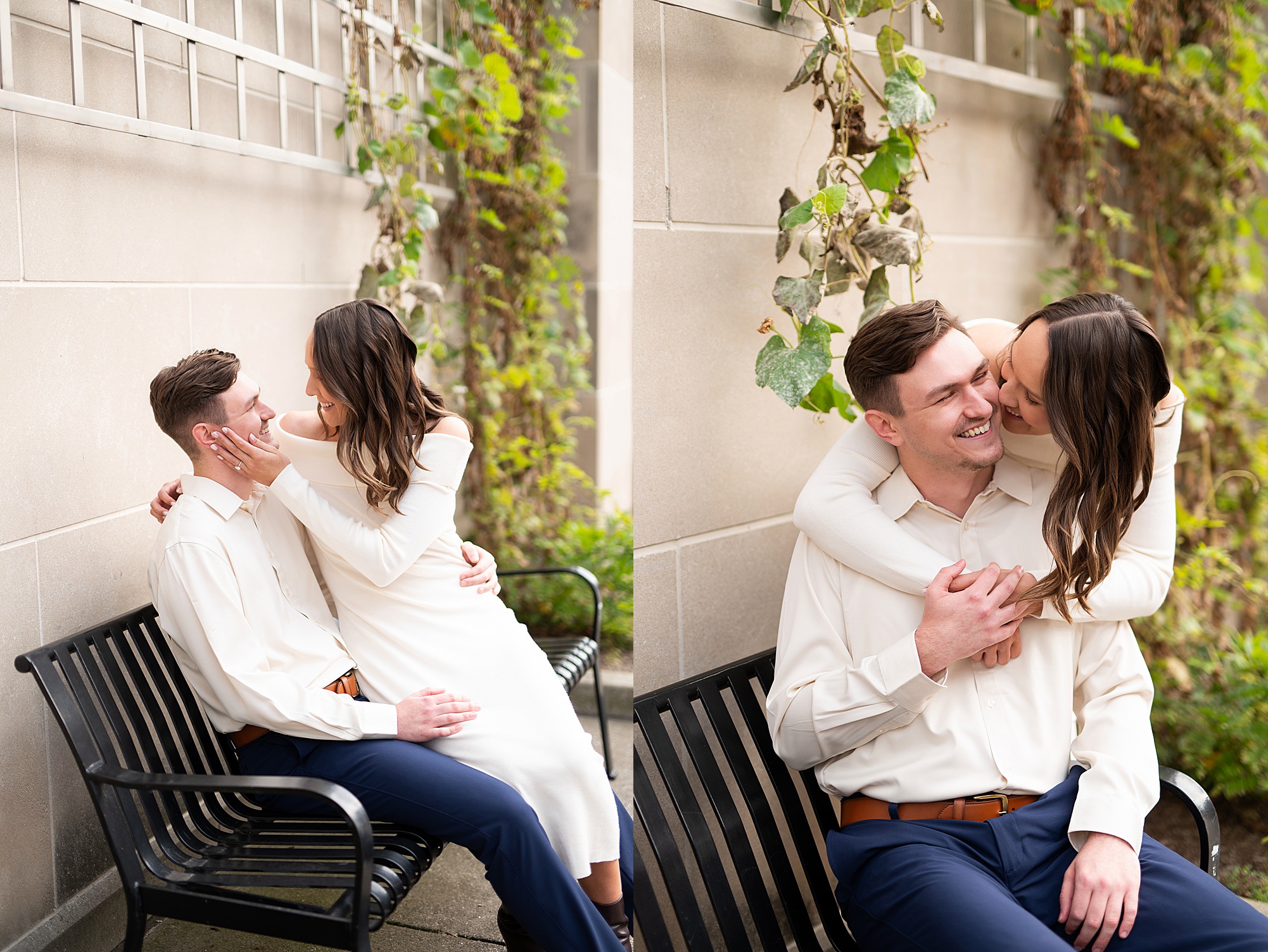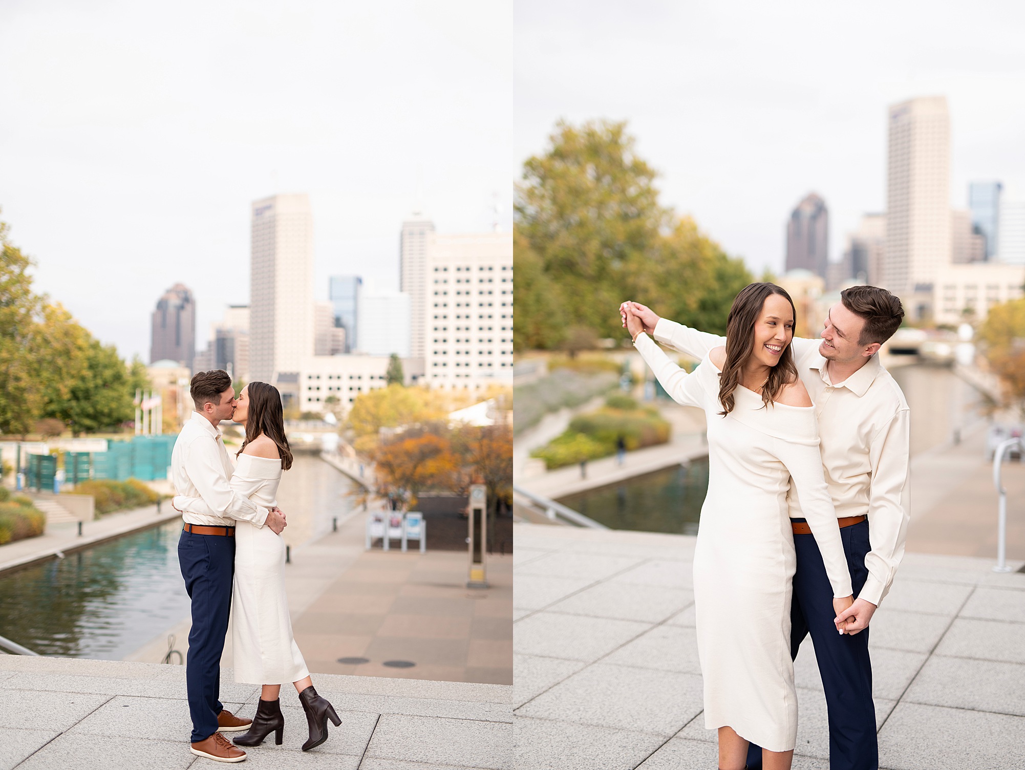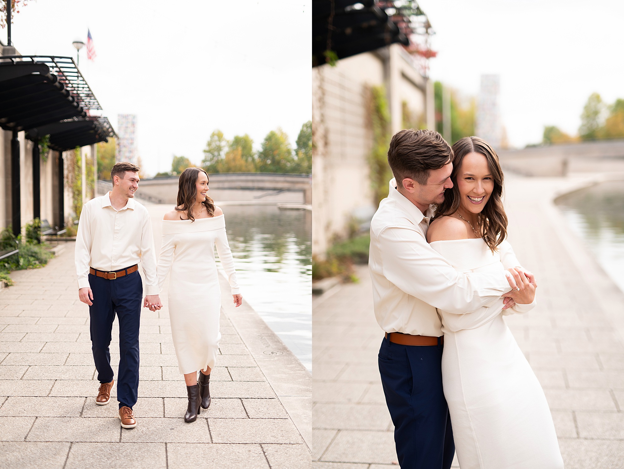 I had the best time meeting Taylor and Hendrix in Indianapolis for their engagement session! We explored the Canal Walk and Coxhall Gardens, and their adorable pup, Nike, even joined in for some photos! These two are such a sweet couple, and it was so fun getting to know them throughout their session. I already can’t wait to celebrate with them at their wedding this fall!